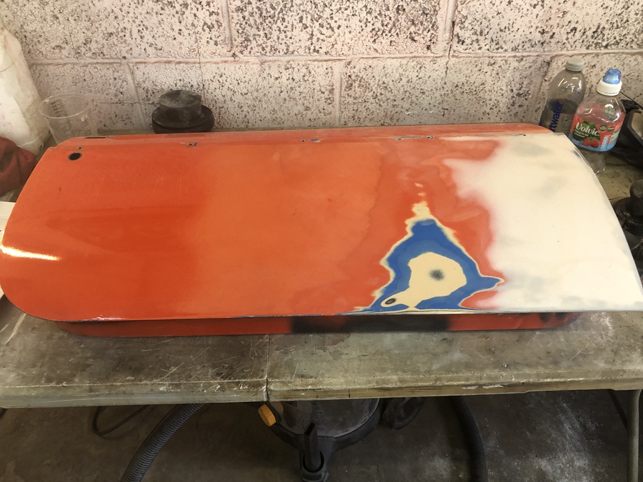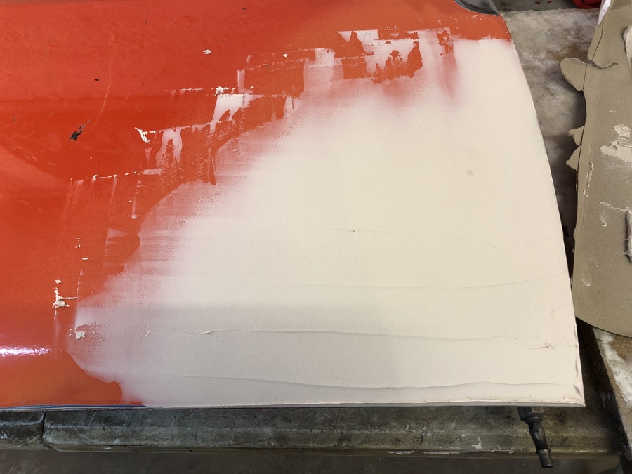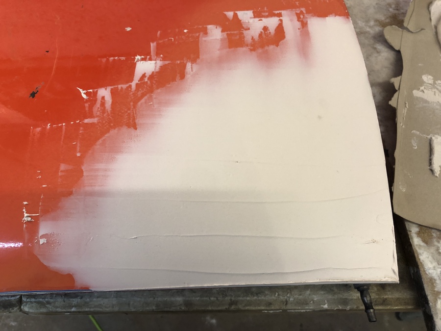 THE PANEL...ONCE SANDED BACK...HOLES AND PREVIOUS FILLER EXPOSED....