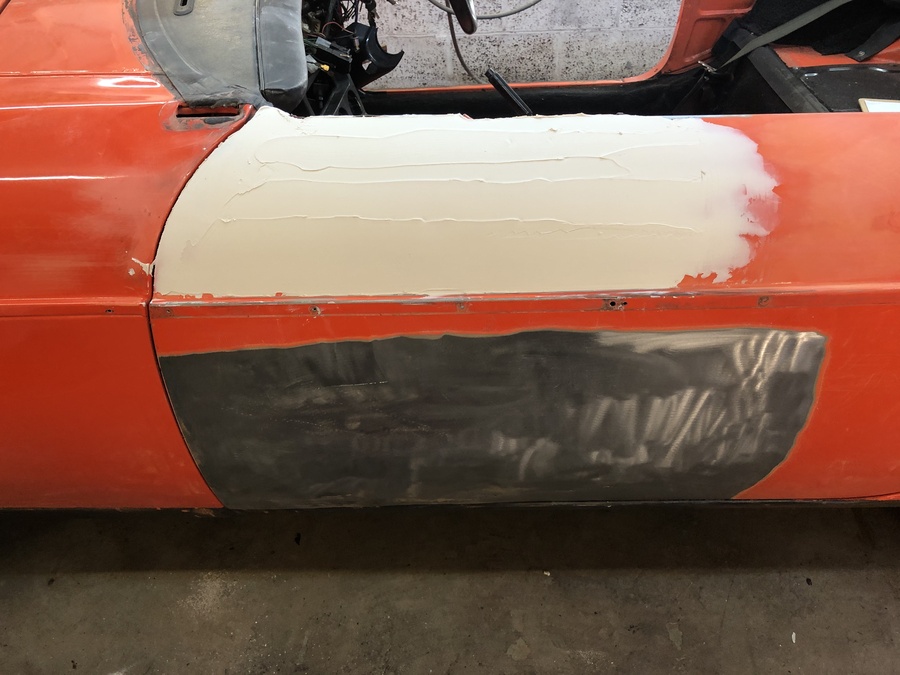 DOOR PANEL NOW BEING WELDED IN THEN WELDS FLATTED BACK