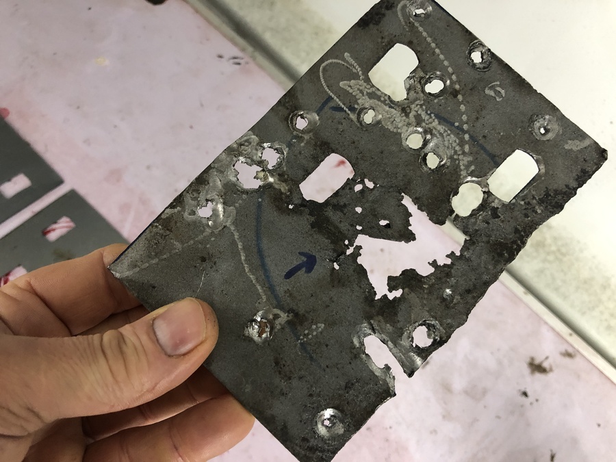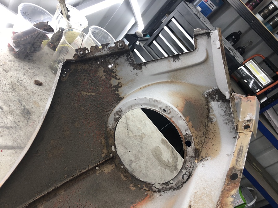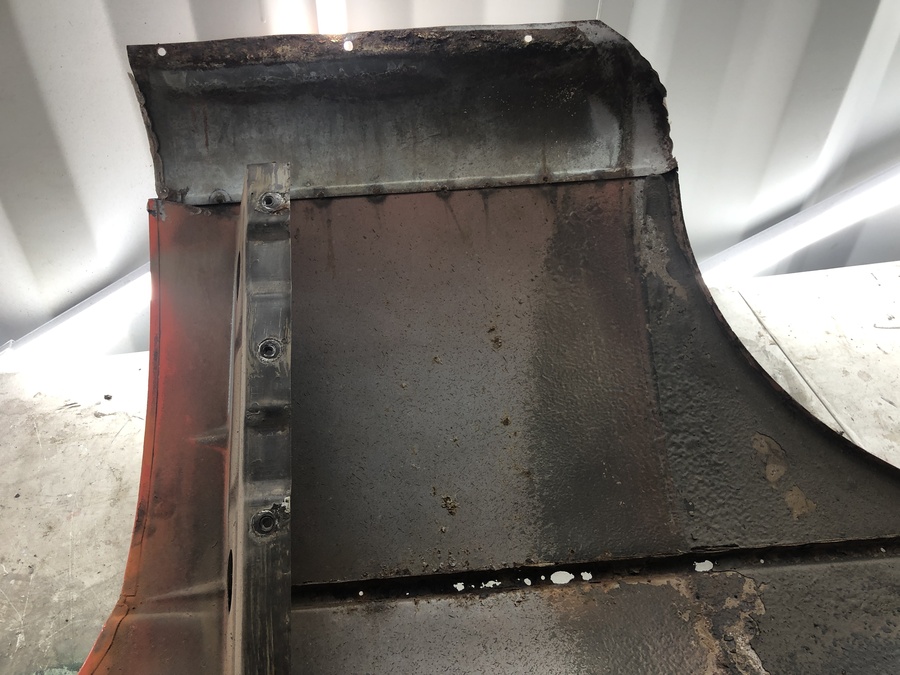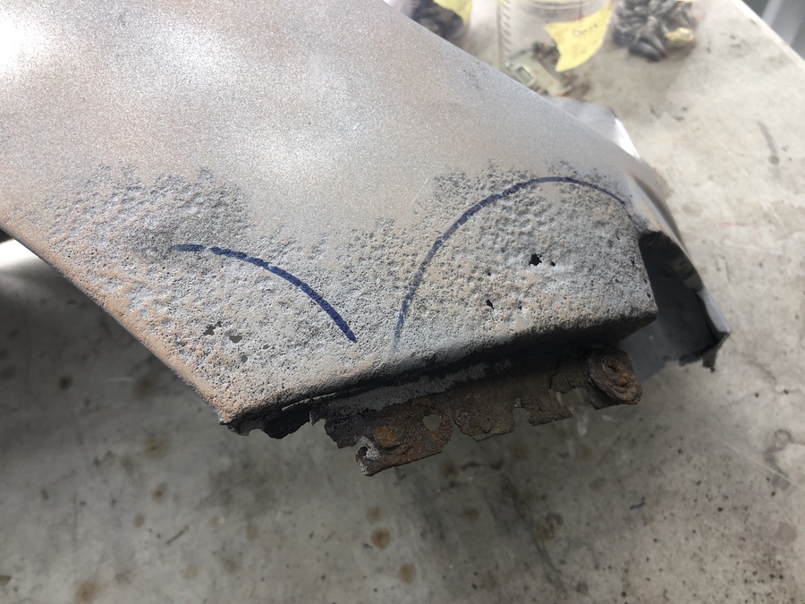 REMOVED O/S WING . NOT AS BAD AS N/S. QUITE A FEW SMALL WELDS