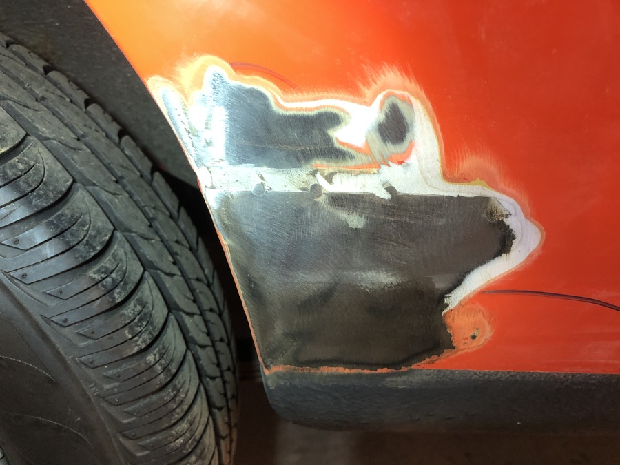 OF DOOR ...ONCE REMOVE... A PRETY LARGE HOLE APPEARED. NOW CAREFULLY FABRICATING